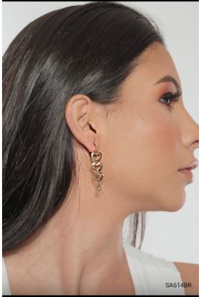BRINCO ARGOLINHA COM TRÊS CORAÇÕES VAZADOS E MINI TIFFANY