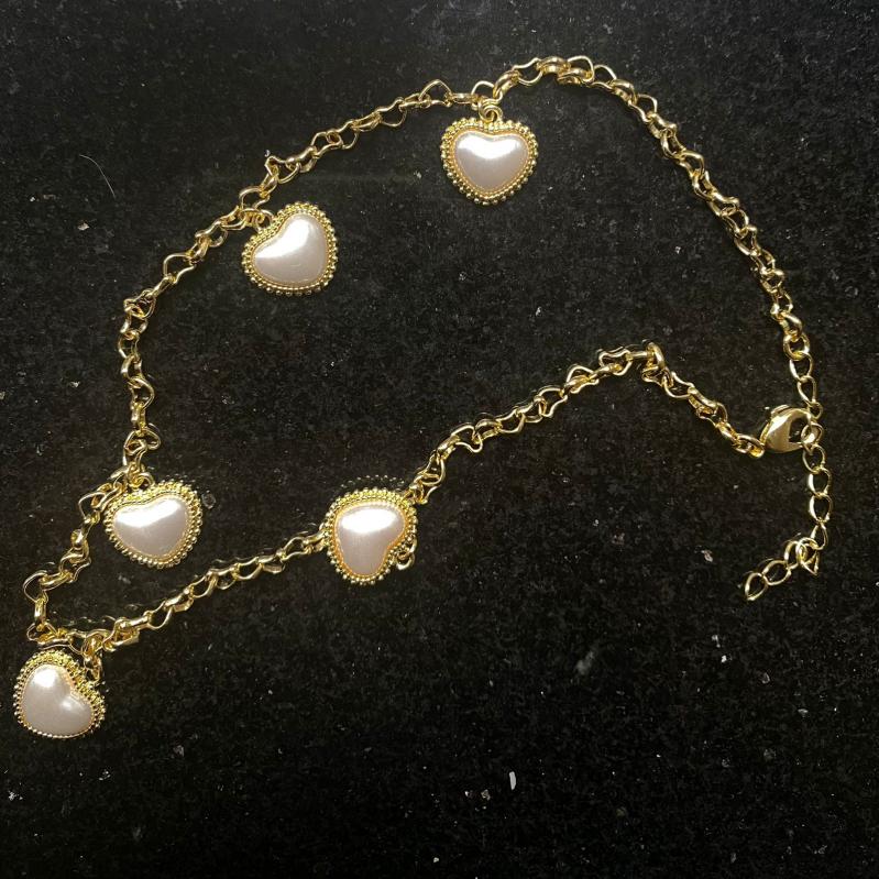 Colar elo coração 5 corações pérola #CL203630XY192992409