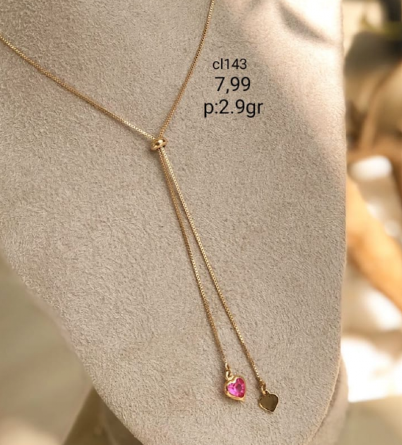 Colar gravatinha coração chapa e coração pedra #CL211679JM104990409